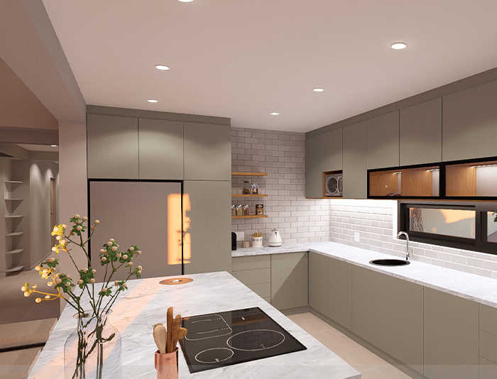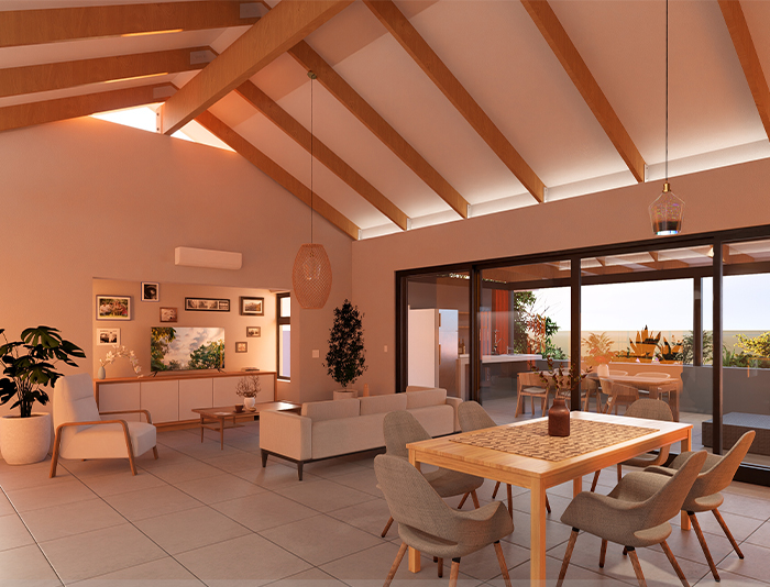 This project in Klein Windhoek showcases a modern, two-story residential building with sleek and contemporary design elements. The upper floor features large windows and a balcony, offering stunning views of the surrounding area. The lower floor includes multiple garage doors and a staircase leading to the upper level. The clean lines and modern aesthetic create a visually appealing and inviting atmosphere.